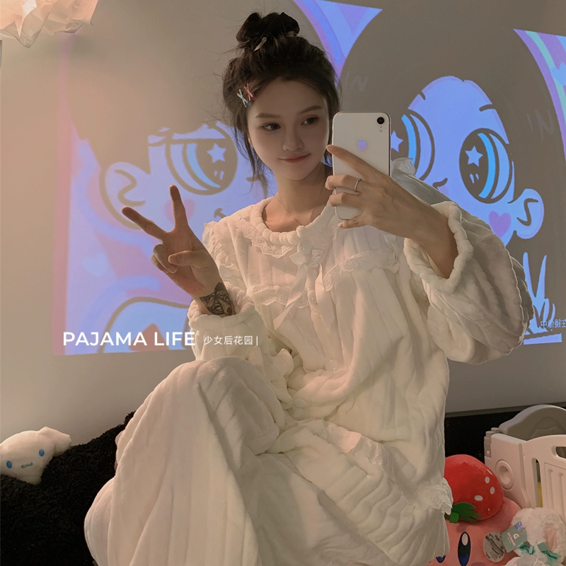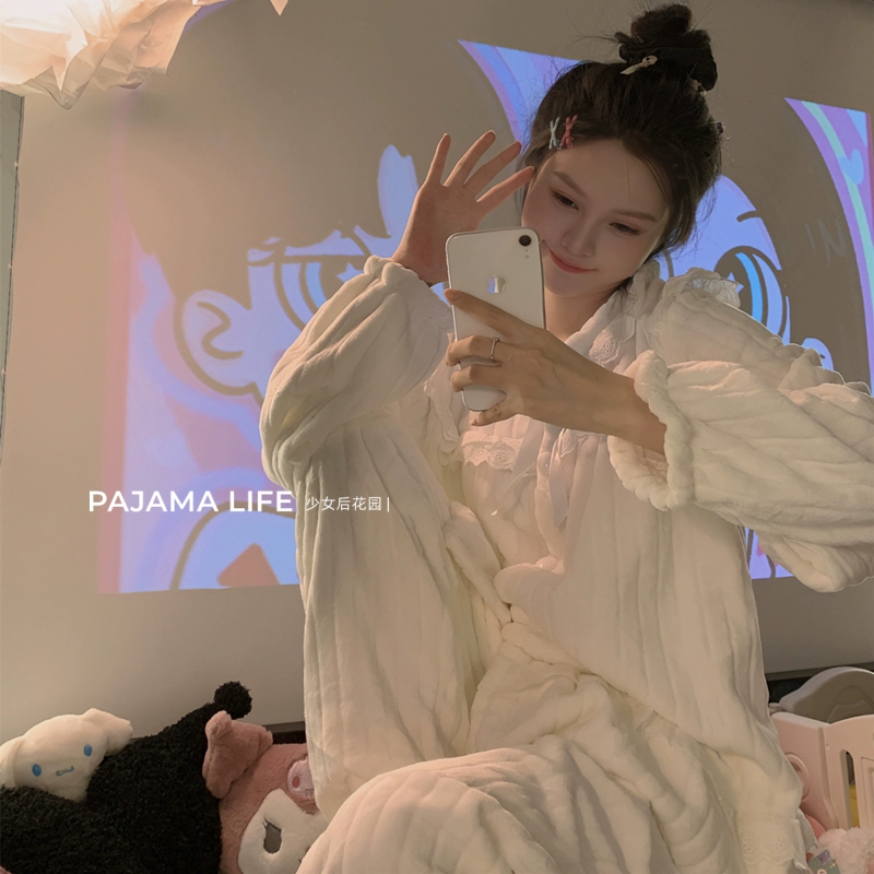 | nameOriginal | Princess style coral velvet pajamas for women, autumn and winter plus velvet and thickened winter high-end flannel homewear set |