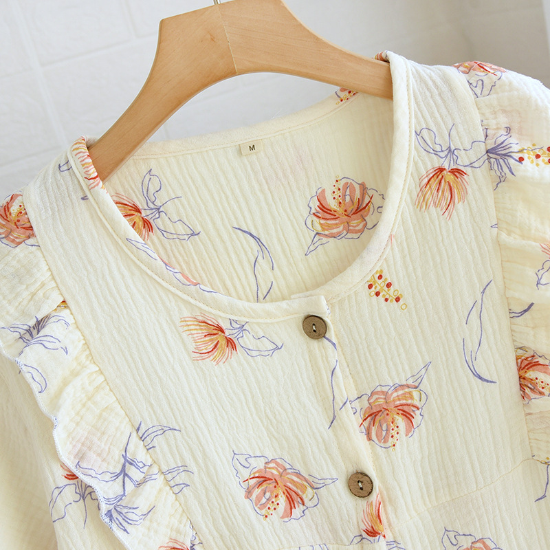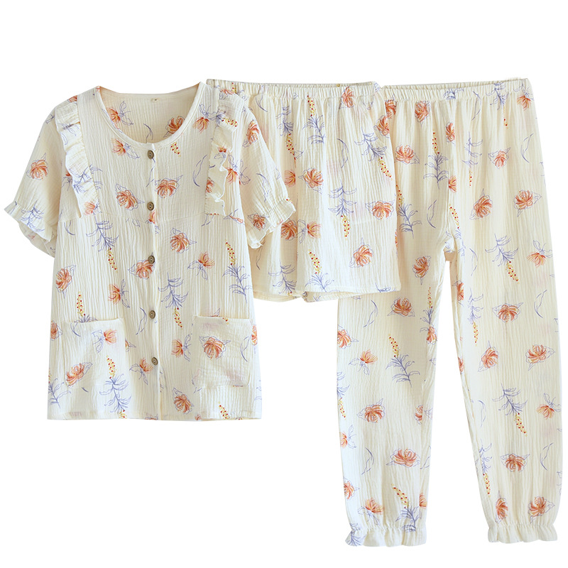 | nameOriginal | Princess Style Cotton Yarn Pajamas Women's Summer Short-sleeved Three-piece Set Cotton Outwear Sweet Summer Home Suit |