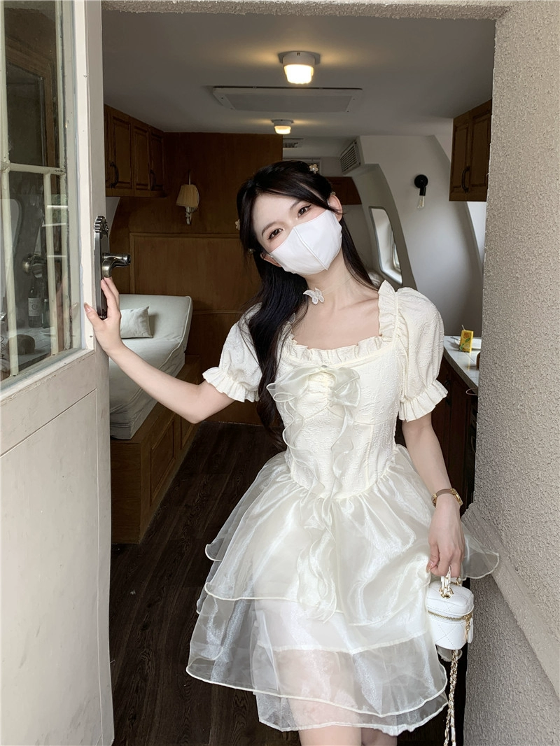 Princess style fungus-edged fairy summer escape dress