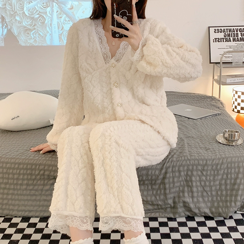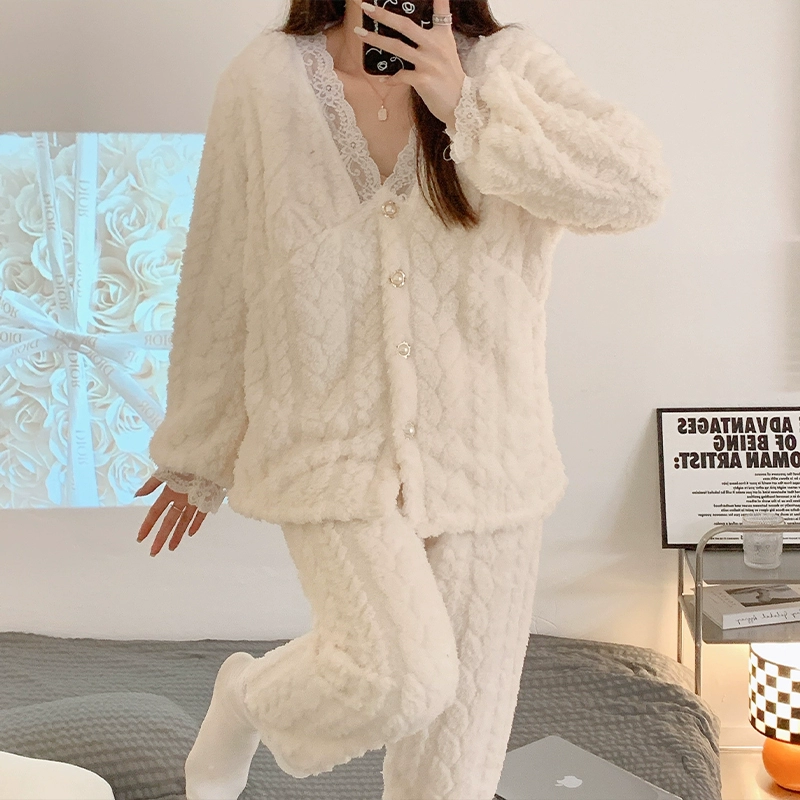 | nameOriginal | Princess style lace sexy coral velvet pajamas for women winter plus velvet thickened autumn and winter flannel plush |