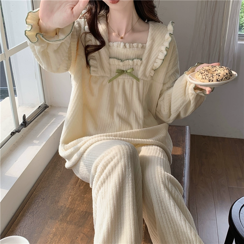| nameOriginal | Princess style pajamas for women in winter, thickened velvet, sweet lace stripes, simple autumn and winter flannel suit |