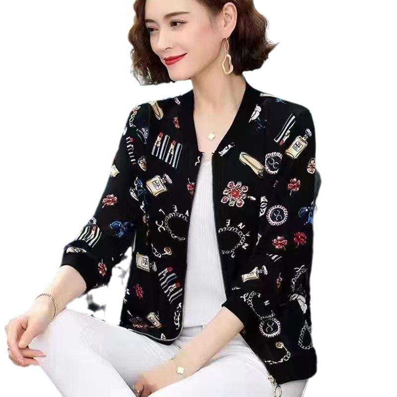 | nameOriginal | Printed Cardigan Long-sleeved Short Coat Mother's Baseball Suit Summer Loose plus size New Style Top Thin Sun-protective Clothing for Women |