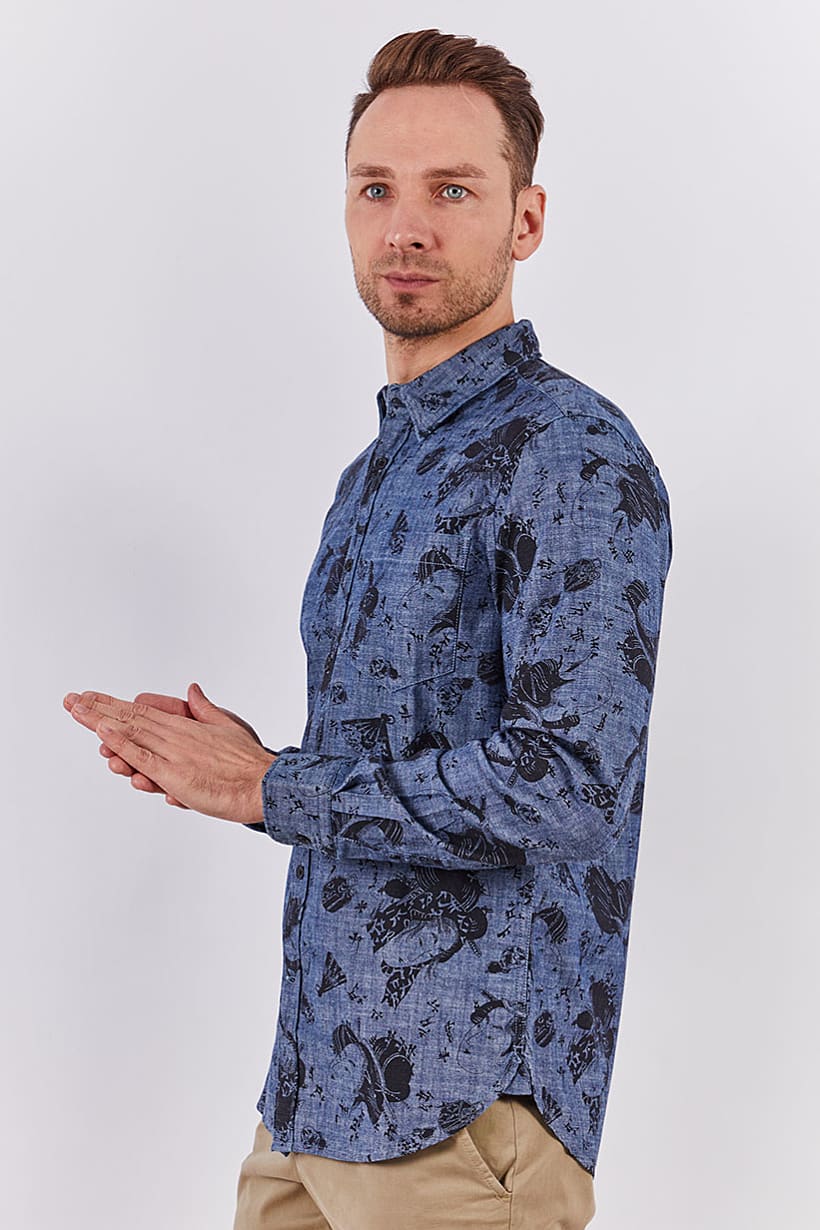 | nameOriginal | Men Regular Fit Printed Long Sleeves Casual Shirt, Mimas Print Chambray |