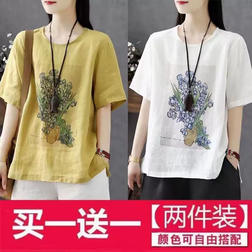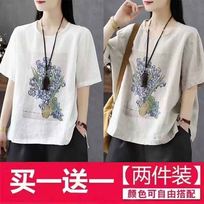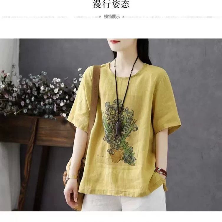 | nameOriginal | Printed cotton and linen casual pullover short-sleeved top |