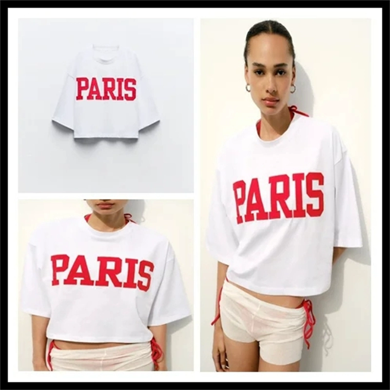 Printed cotton T-shirt with dropped shoulders, round neck, short sleeves