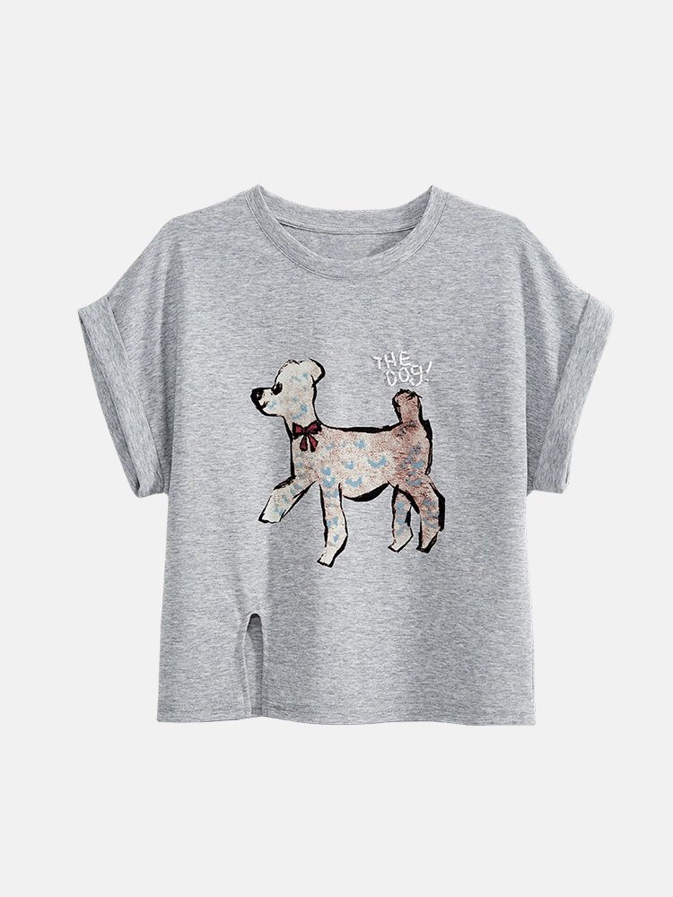 | nameOriginal | Printed design round neck short-sleeved top cartoon puppy |