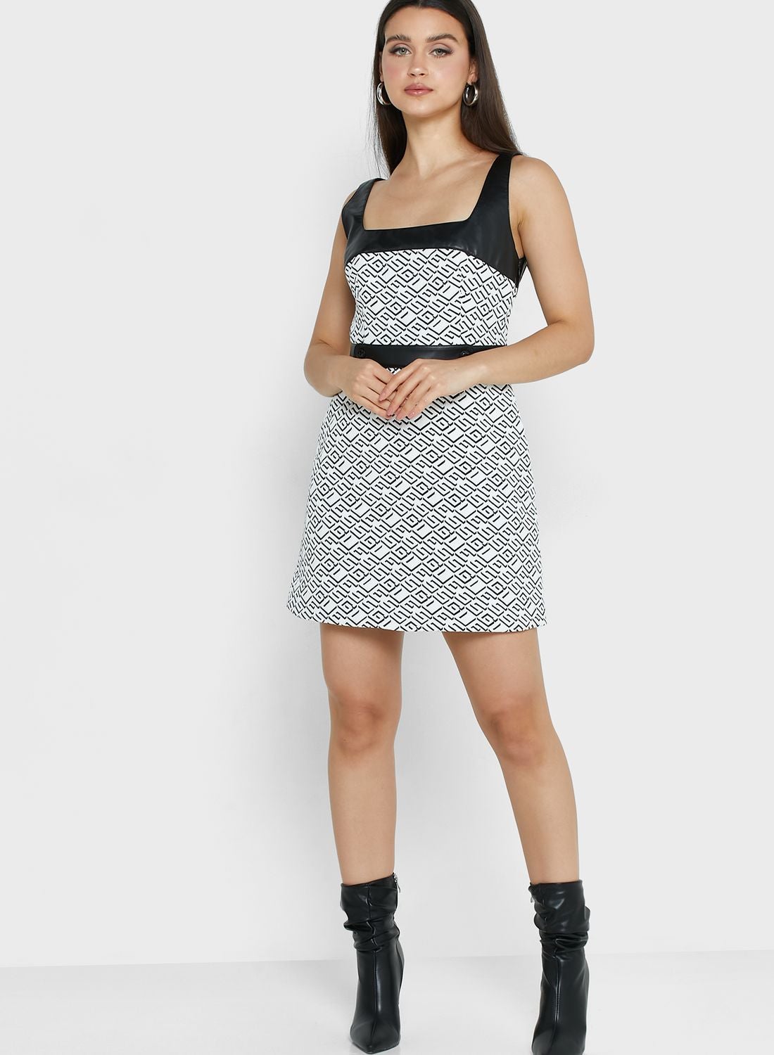 Printed dress with belt detailing.