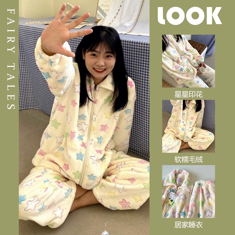 Printed high-end coral velvet women’s home long-sleeved pajamas