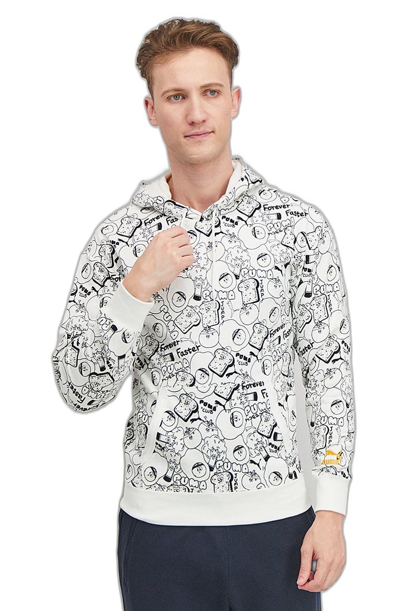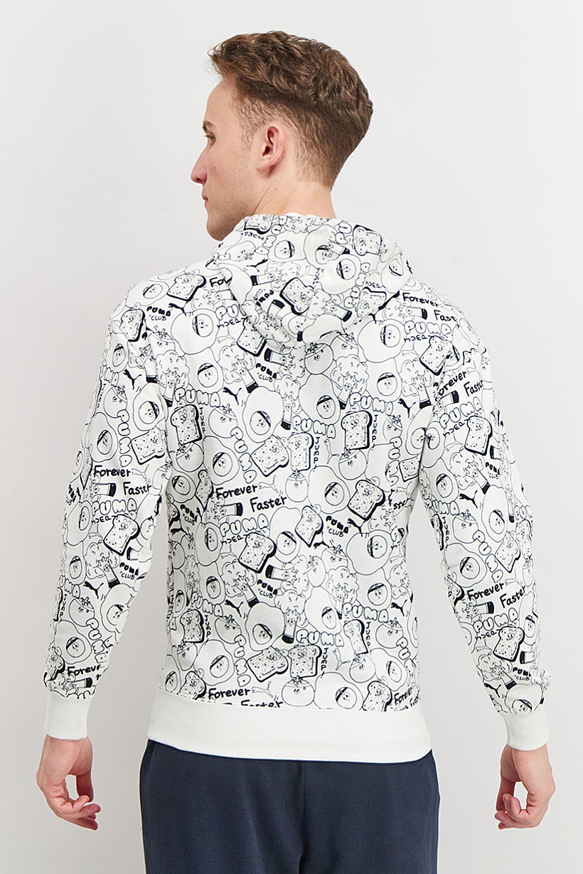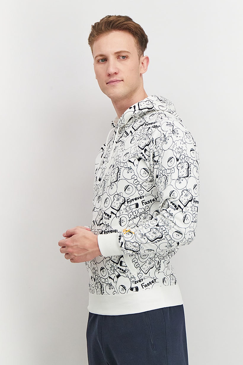 Men Clothing, Sportswear, men hooded drawstring allover printed sweatshirt white and black