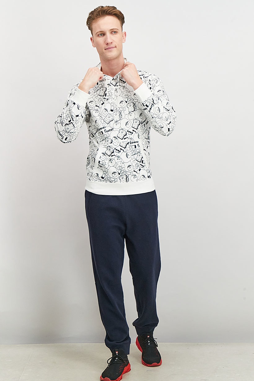 Care : Machine washable, Fit : Regular fit, Size shown : US, Thickness : Light, Type of Neckline & Collar : Hood with drawstrings , Type of Sport : Training, Fabrics : 100% Cotton, Pattern & Print : Allover print, Sportswear Type : Sweatshirts, Color Family : White,