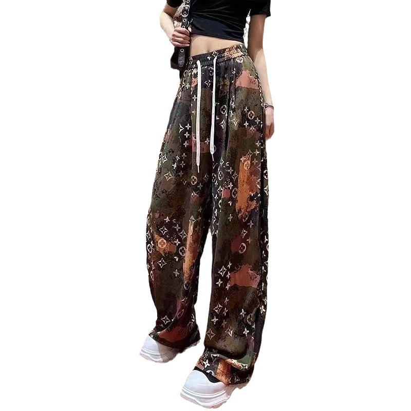 Printed Ink Chinese Style Ice Silk Wide Leg Pants Second Generation Yamamoto Pants Women’s High Waist Straight Loose Casual Pants Women’s Walking Pants