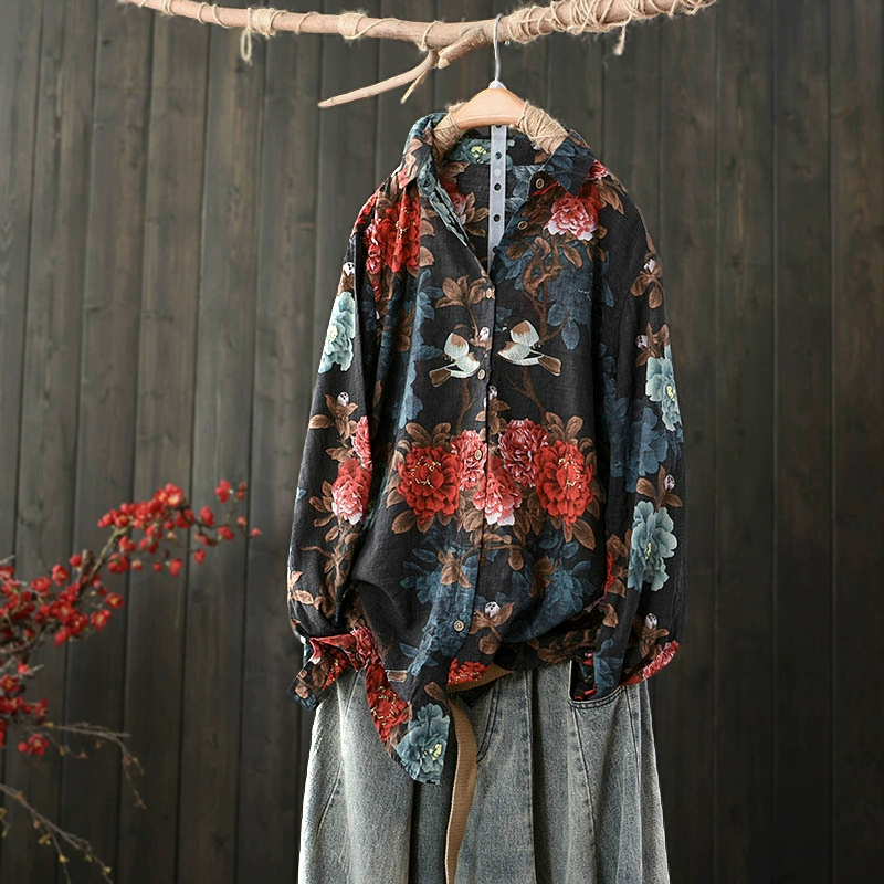| nameOriginal | Printed long-sleeve casual lapel plus size linen shirt |