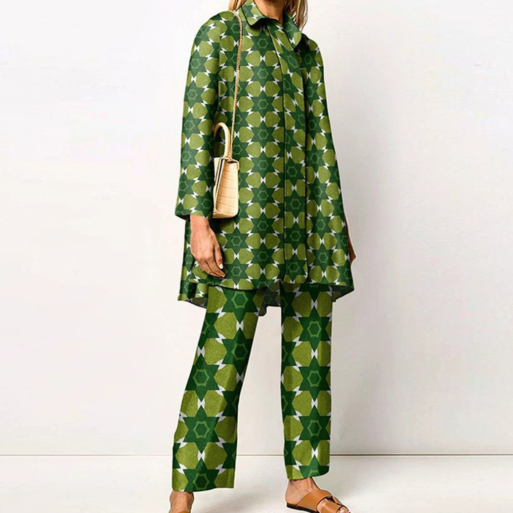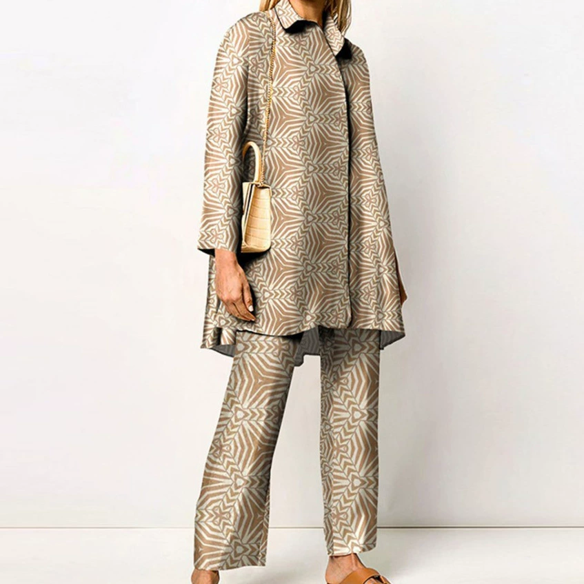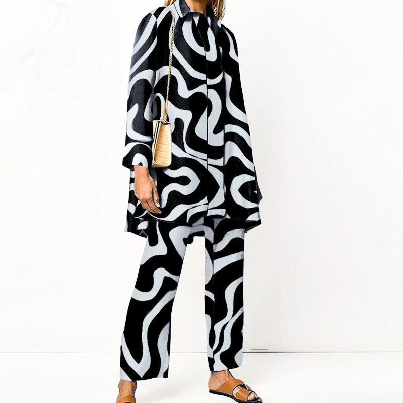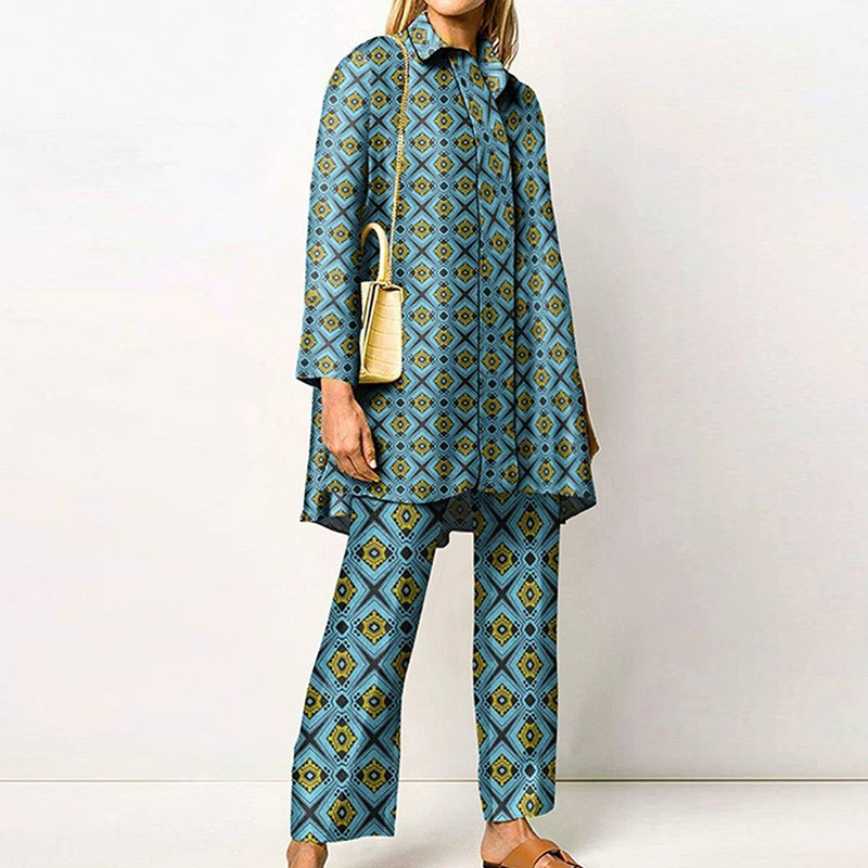 | nameOriginal | Printed loose long sleeved wide leg pants fashion suit set |