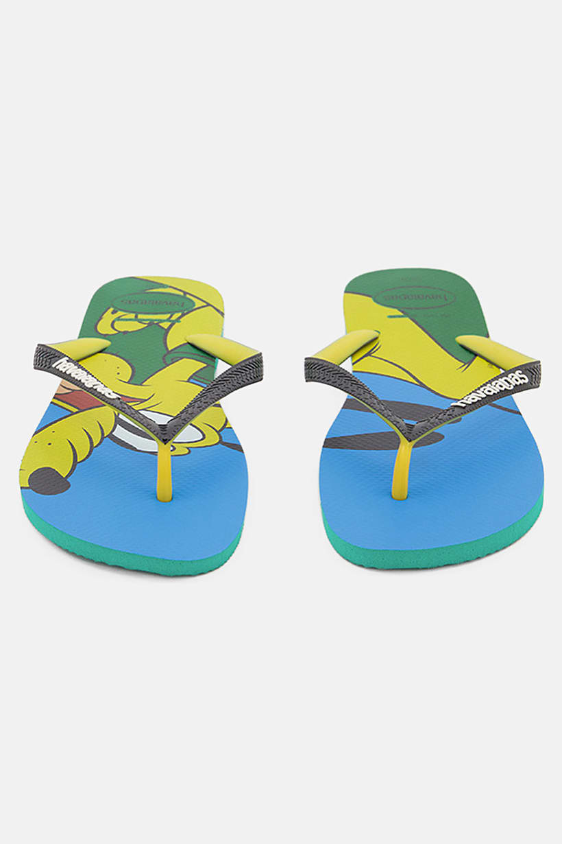 Men Slip On Printed Slippers, Blue/Green/Yellow
