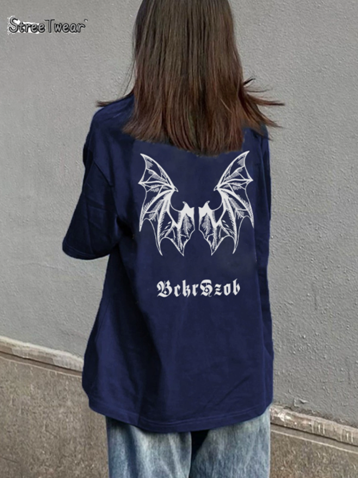 Printed Navy Couple Loose Short Sleeve T-Shirt