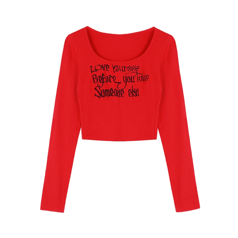 Printed Pure Desire Slim Cropped Top Long Sleeve T-Shirt