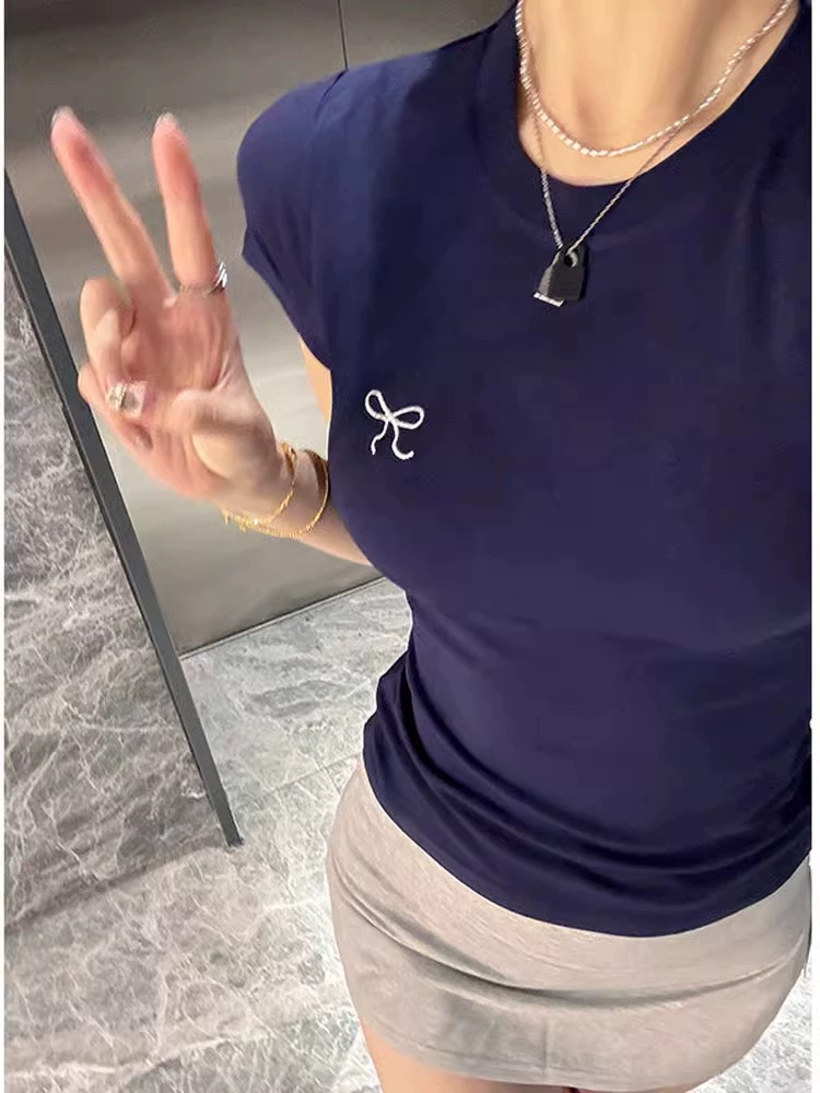 | nameOriginal | Printed right shoulder short sleeve t-shirt sweet girl bow |