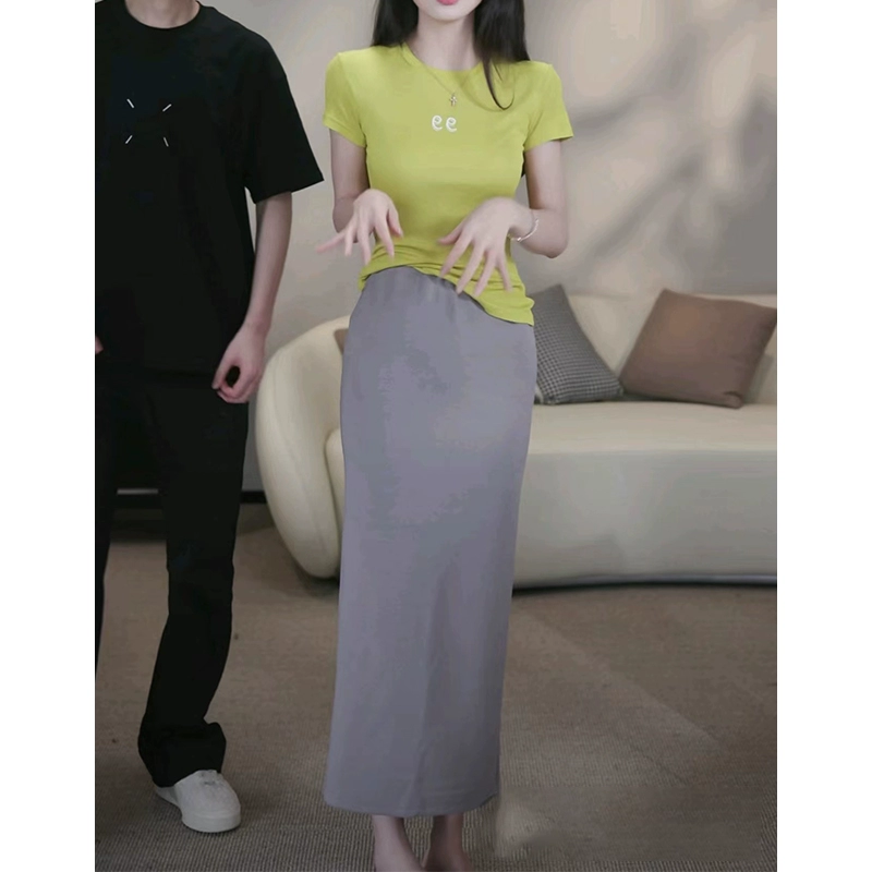 Printed round neck right shoulder summer slim short-sleeved T-shirt