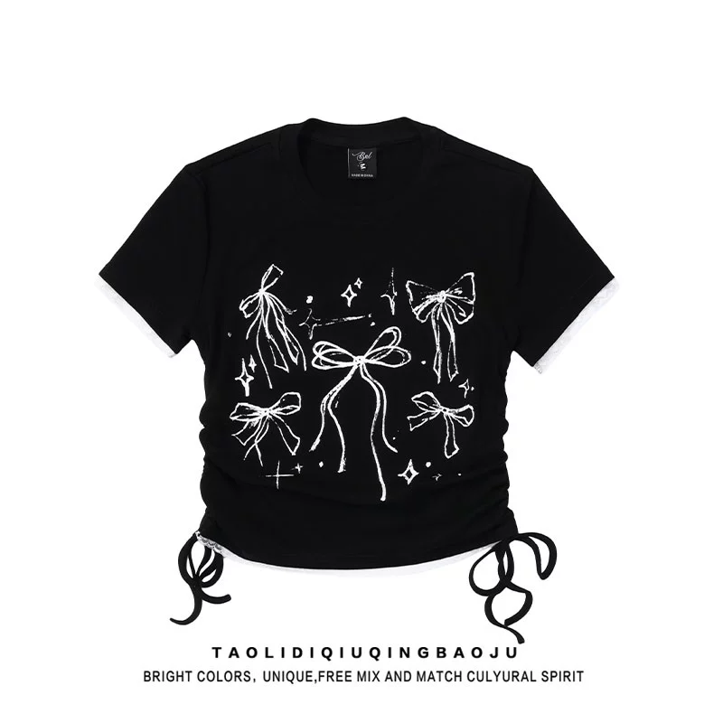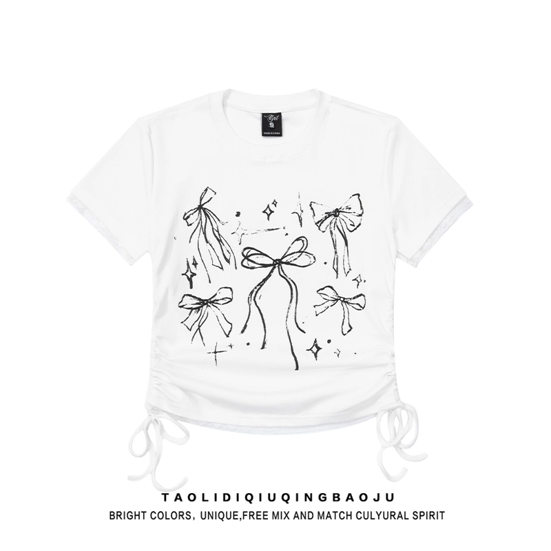 | nameOriginal | Printed short-sleeved slim-fit drawstring strap with black bow |