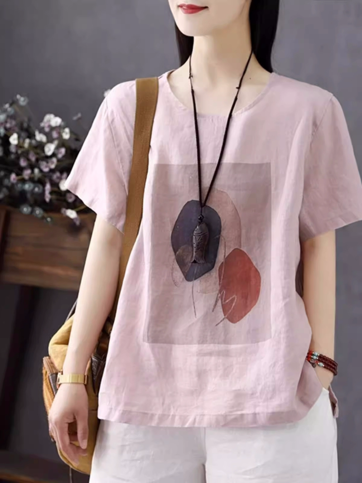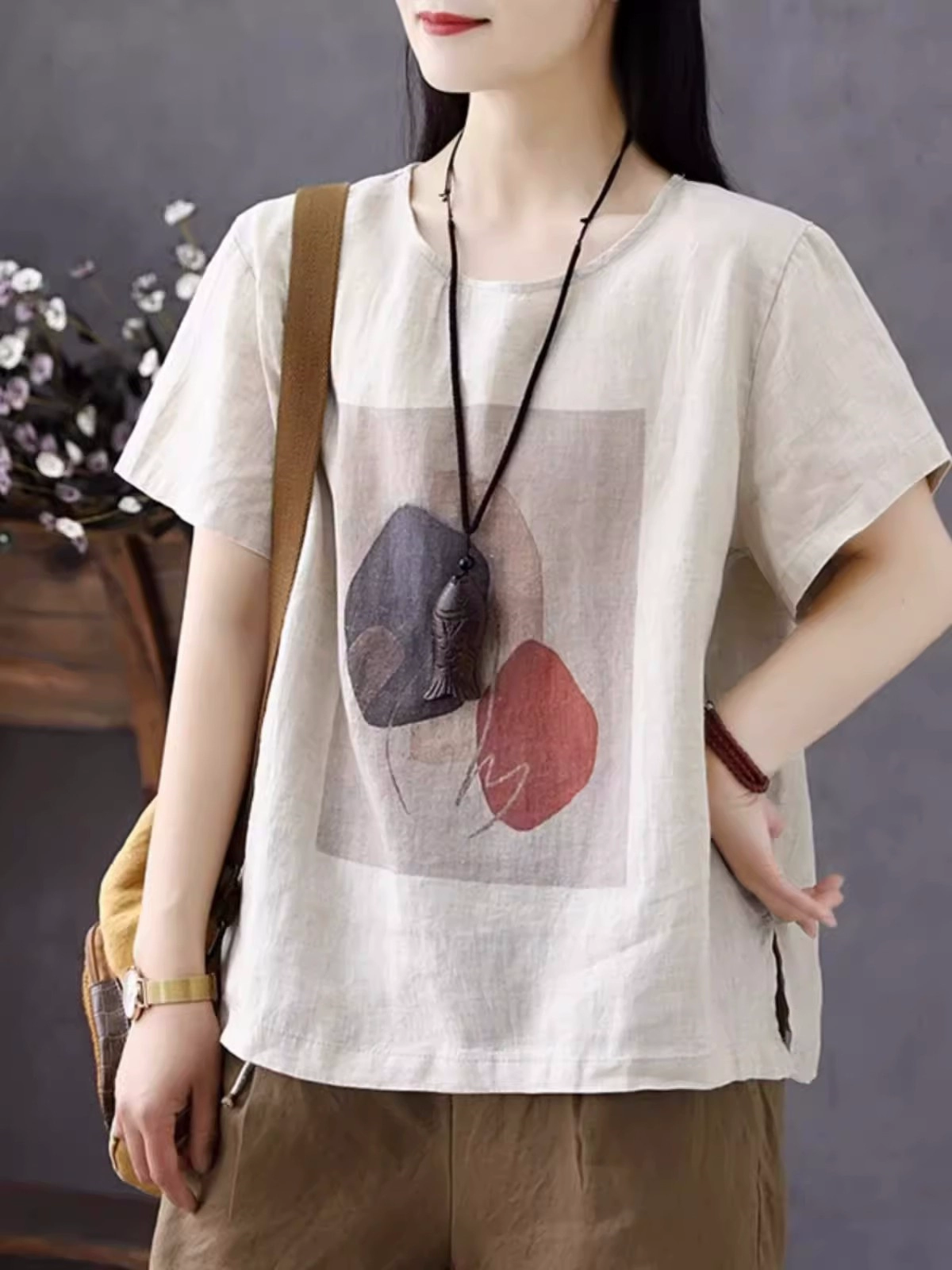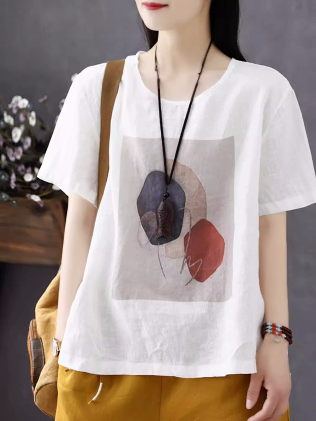 | nameOriginal | Printed short-sleeved T-shirt thin pullover casual linen |