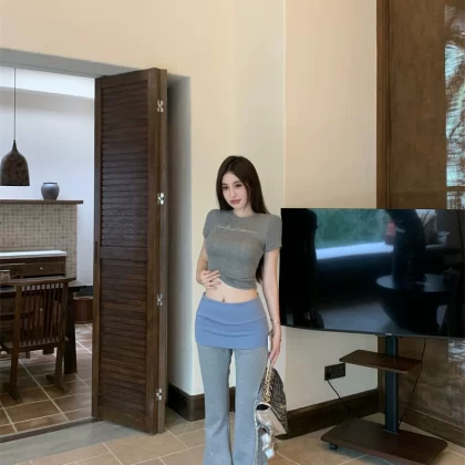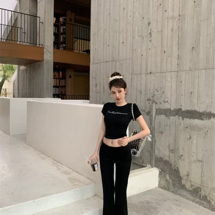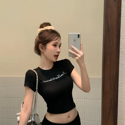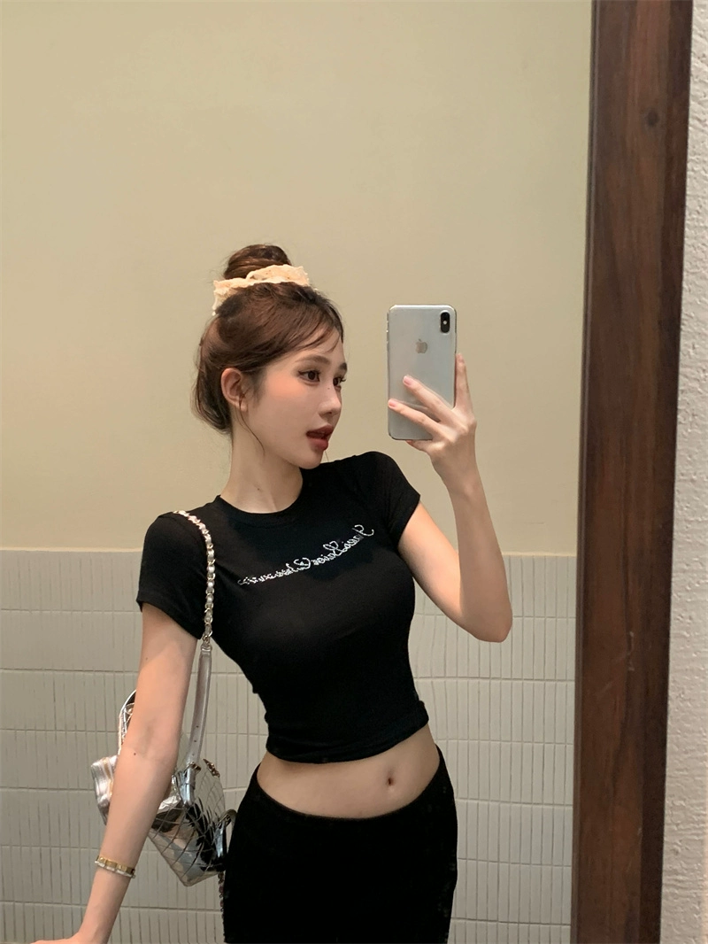 | nameOriginal | Printed shoulder T-shirt summer slim fit short sleeve top |