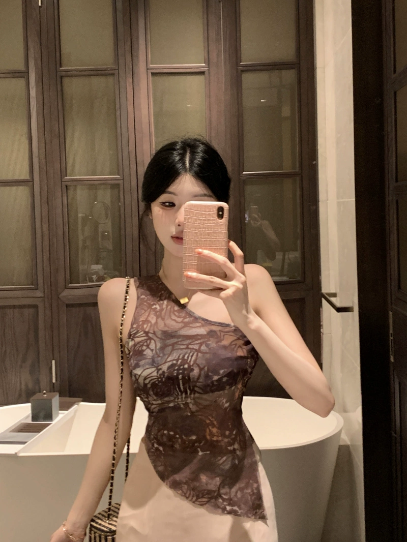 | nameOriginal | Printed sloping shoulder irregular sexy sleeveless vest |