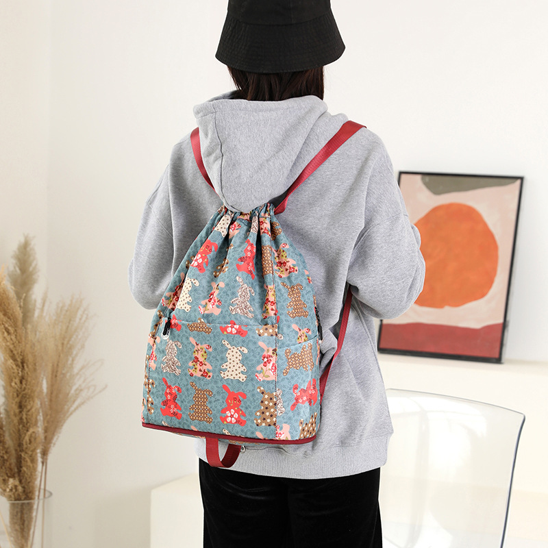 Printed storage bag fashionable drawstring backpack lightweight large capacity casual all-match trendy outdoor travel backpack