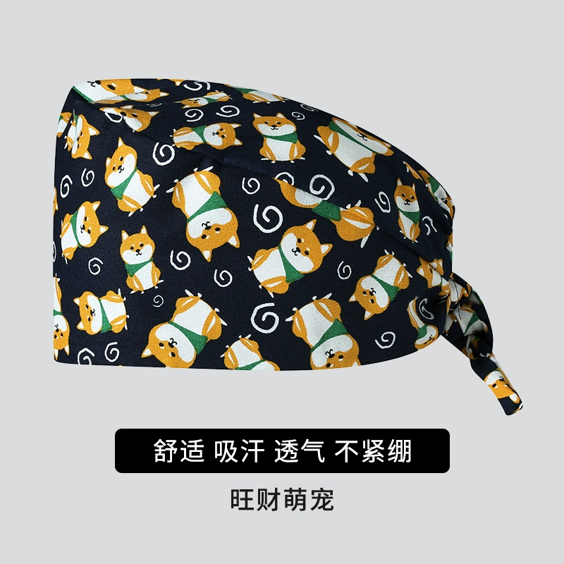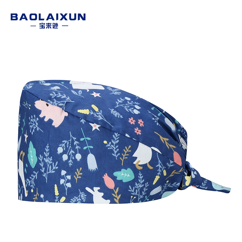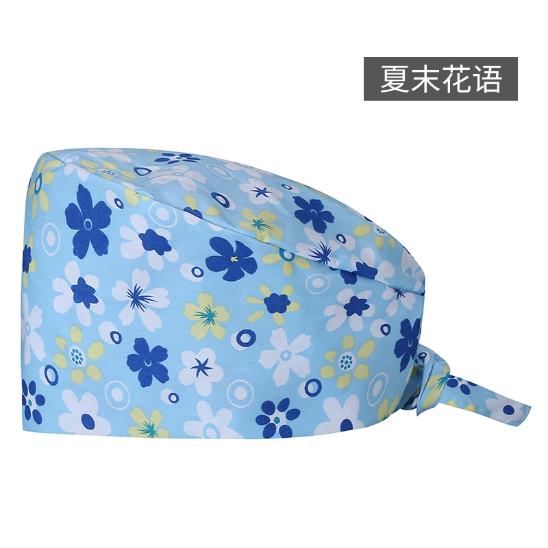 Printed surgical hat for women and men breathable Baotou oral dental pure cotton chemotherapy doctor nurse beautician work hat
