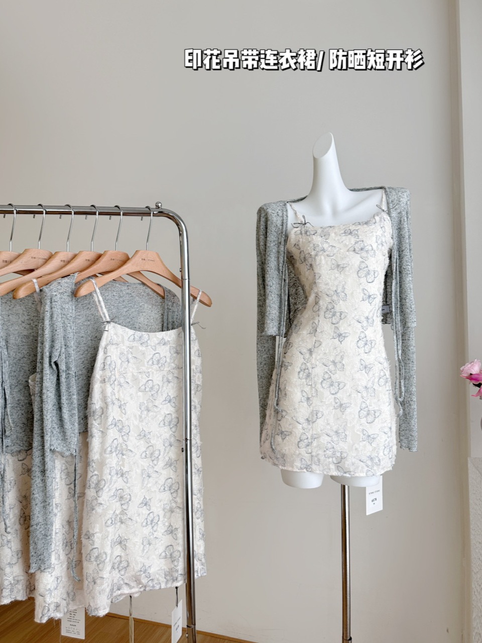 | nameOriginal | Printed suspender spring and summer sun protection cardigan dress |