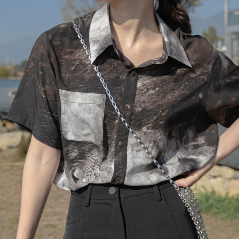 Printed tie-dye shirt retro Japanese style loose short sleeves