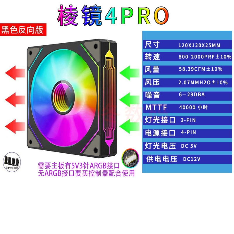 | nameOriginal | Prism 4Pro fourth generation sea view room chassis cooling fan 12CM divine light synchronization 5V three-pin ARGB colorful mute |