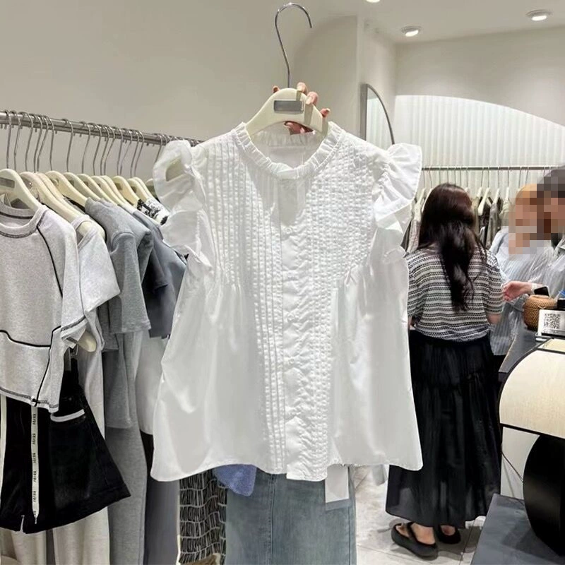 | nameOriginal | Private style white shirt with pleated small flying sleeves with fungus edges |