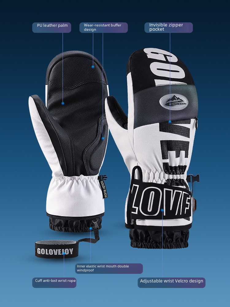 | nameOriginal | Professional adult ski gloves men's and women's wristband thickened waterproof single and double board finger raccoon touch screen inner five finger warm |
