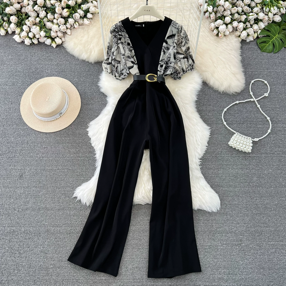| nameOriginal | Professional bubble V-neck casual high waist straight short sleeves |