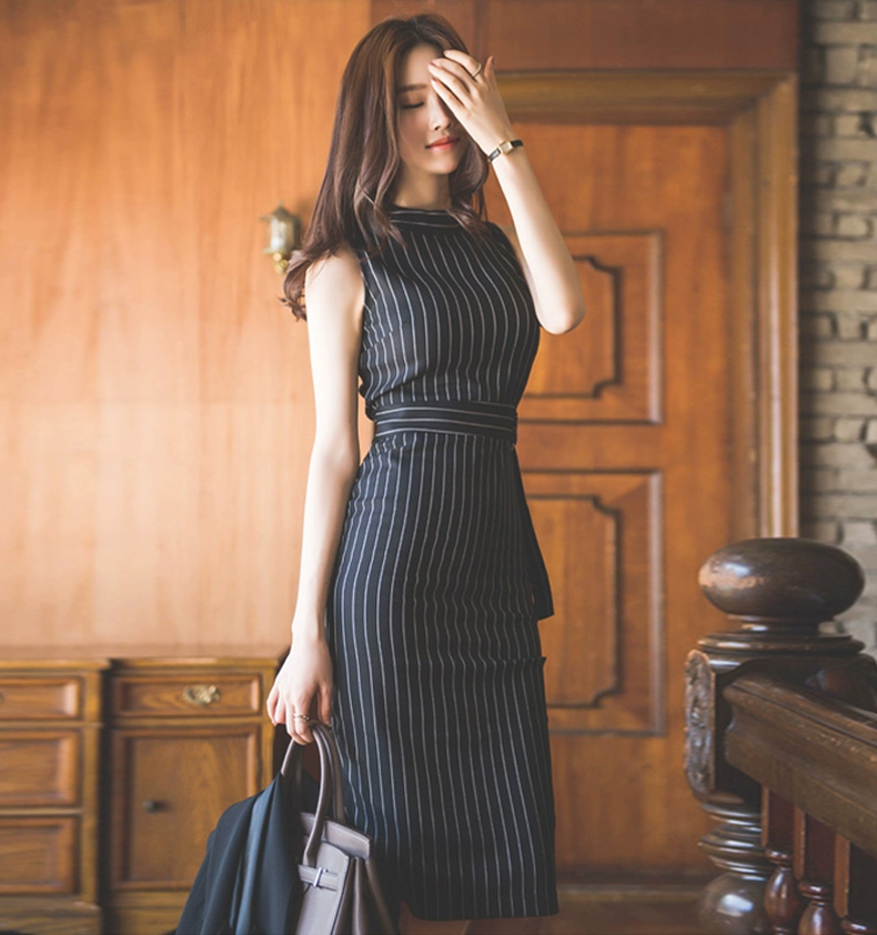 | nameOriginal | Professional cape sleeveless striped fashion suit dress |
