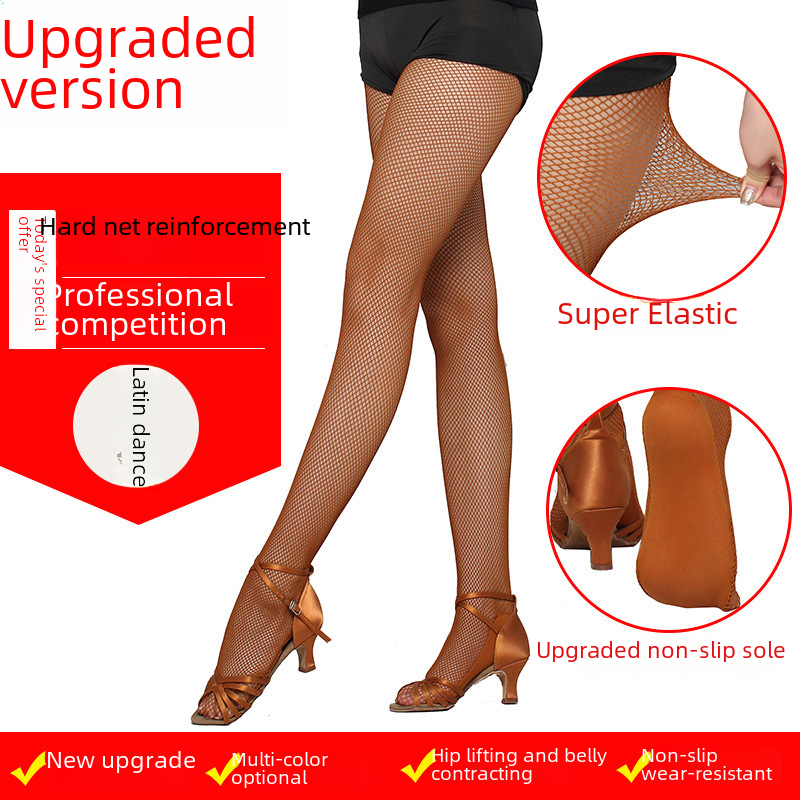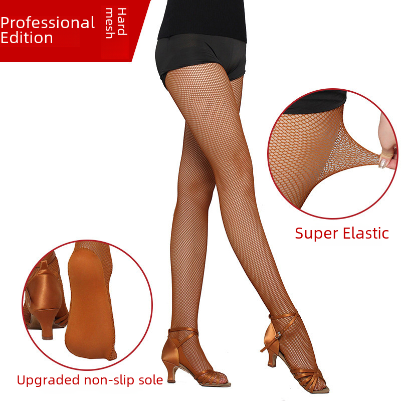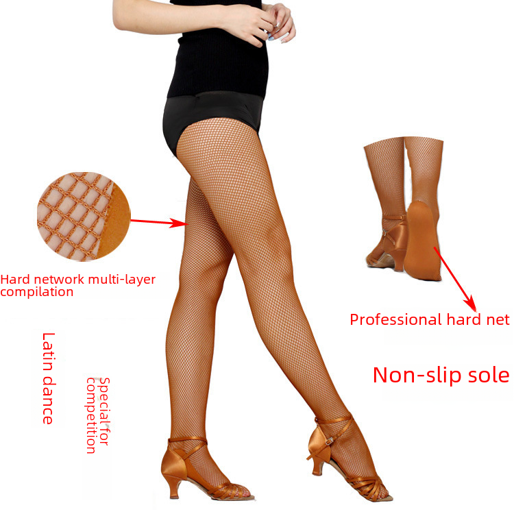 Professional hard mesh Latin dance net socks dance competition special socks foot non-slip bone line caramel beef tendon socks pantyhose