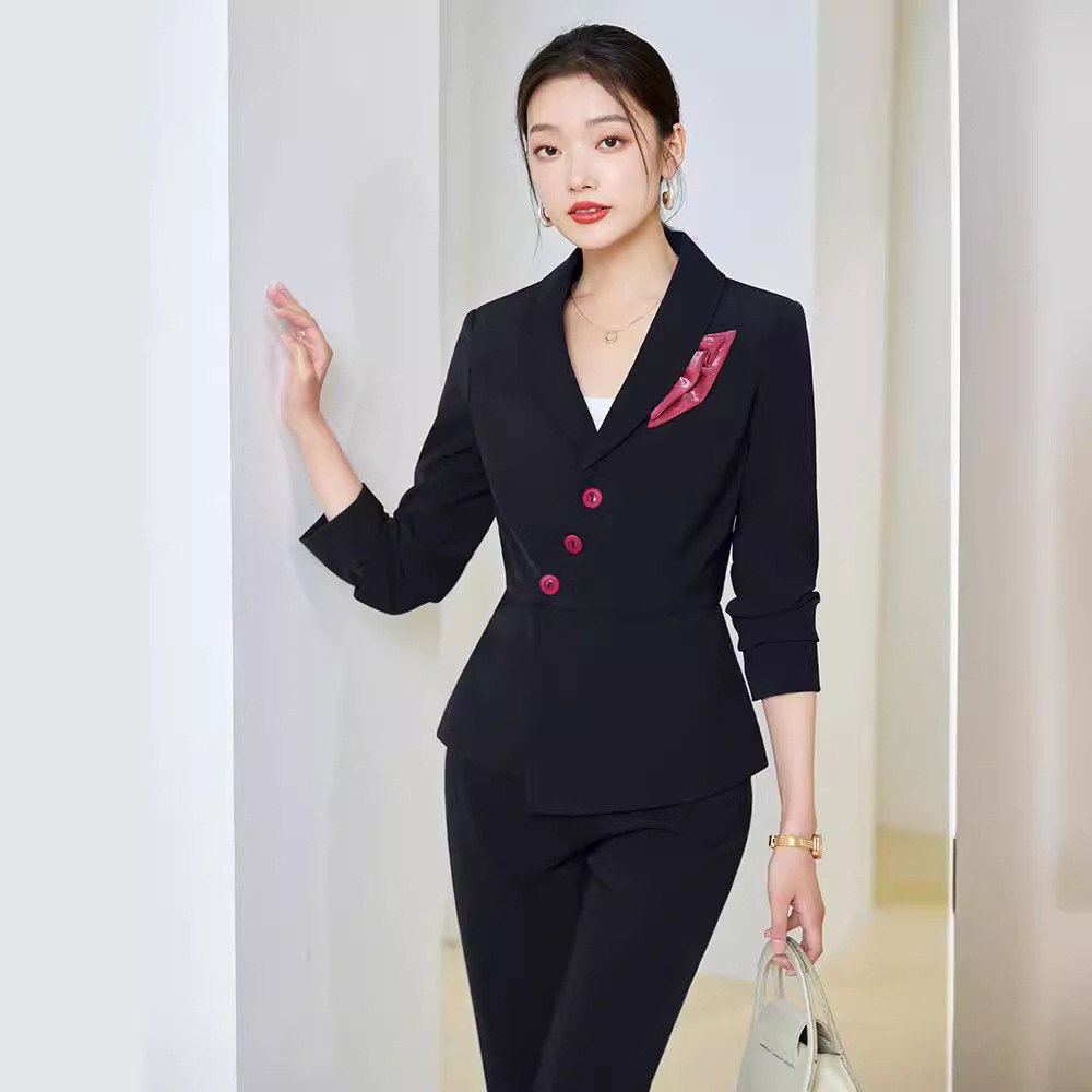 | nameOriginal | Professional suit female 2024 spring and autumn long sleeve suit fashion temperament goddess fan work clothes hotel manager reception work clothes |