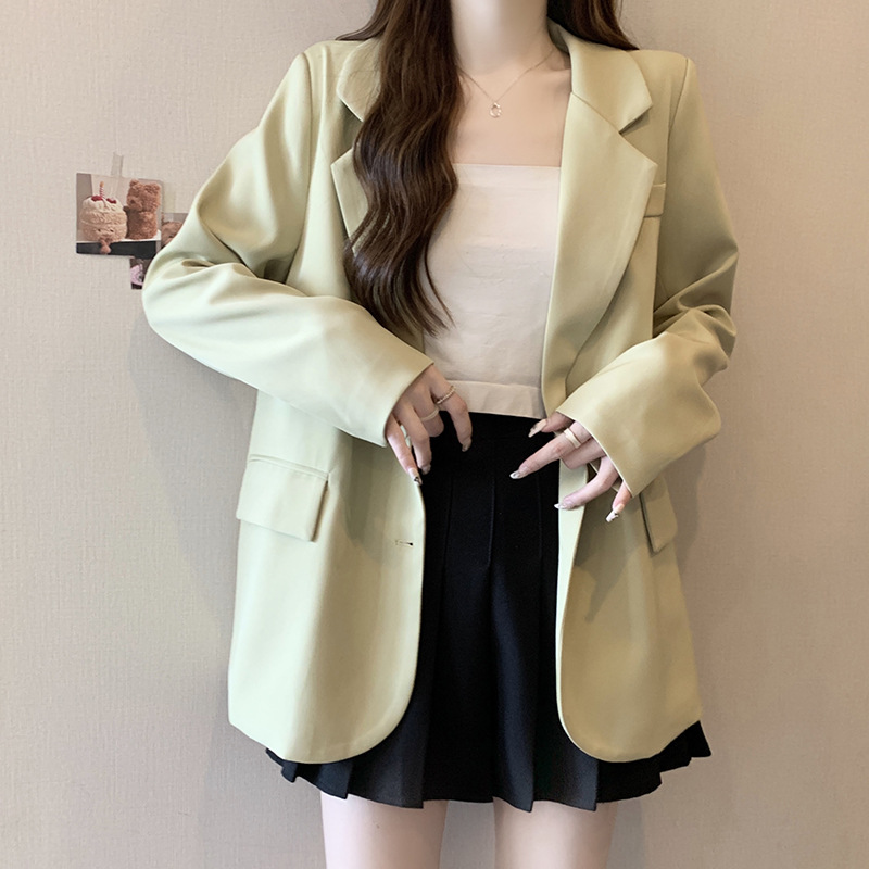 Professional suit jacket for women Spring and Autumn plus size chubby girl slimming mid-length casual temperament lapel suit