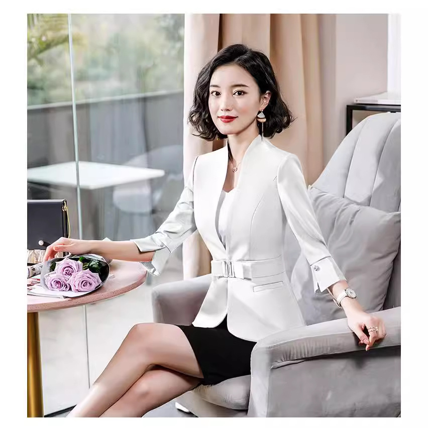 Professional Suit Women’s 2019 New Mid-Sleeve OL Hotel Work Clothes Business Ladies Chanel Style Suit Dress Spring and Summer