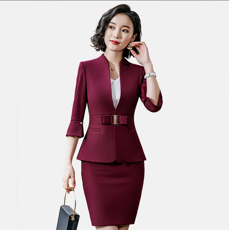 Professional Suit Women's 2019 New Mid-Sleeve OL Hotel Work Clothes Business Ladies Chanel Style Suit Dress Spring and Summer