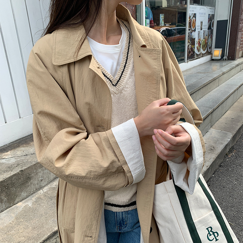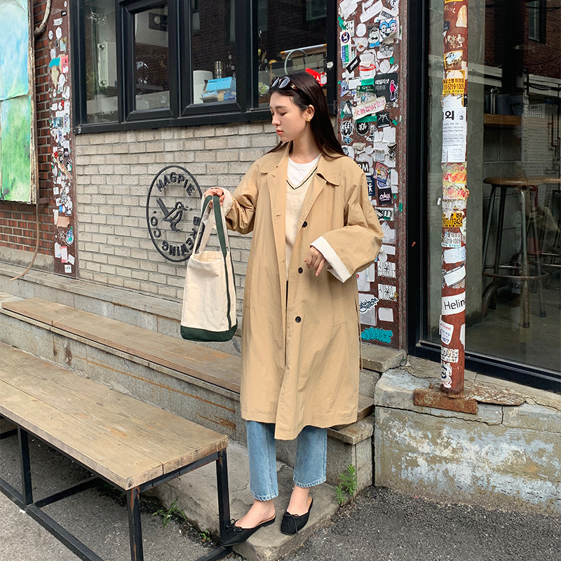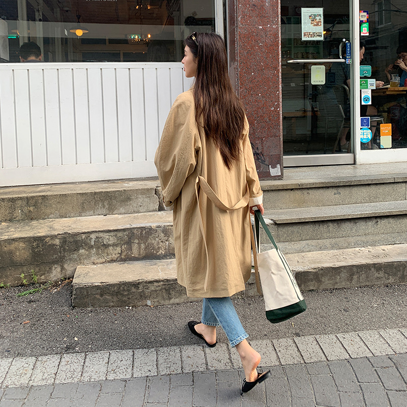 | nameOriginal | Profile lapel trench coat women's single-breasted simple loose casual overcoat 2863 |
