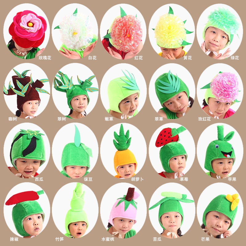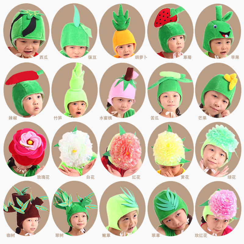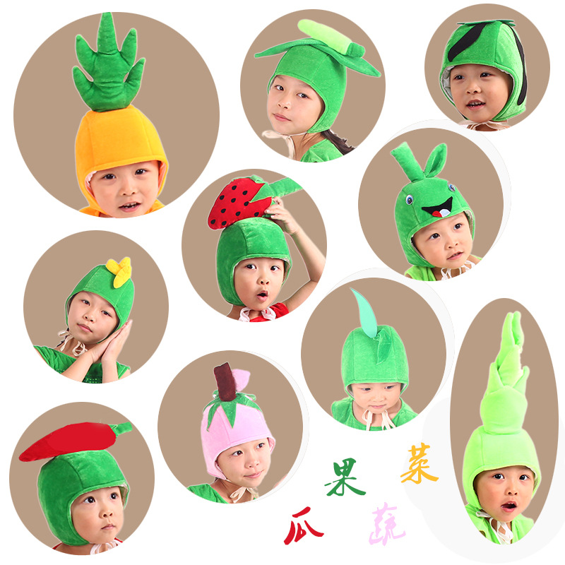 | nameOriginal | Promotional Kids Adult Dance Show Headwear Flowers Trees Fruit Vegetables Peach Mango Strawberry Shape Hat |