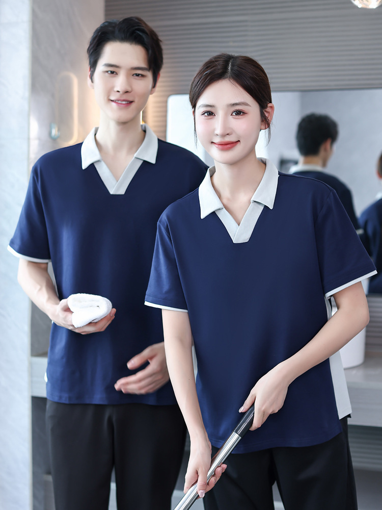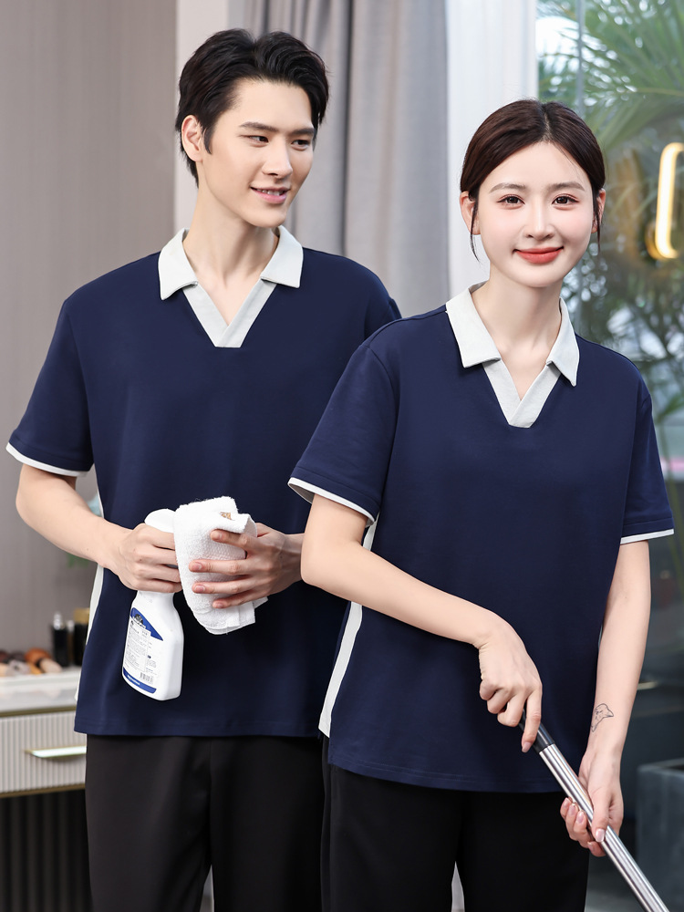| nameOriginal | Property cleaning overalls short-sleeved T-shirt hotel guest room hospital logistics cleaner aunt summer thin breathable |
