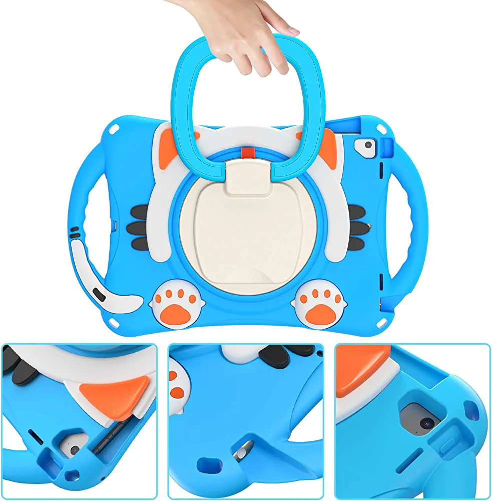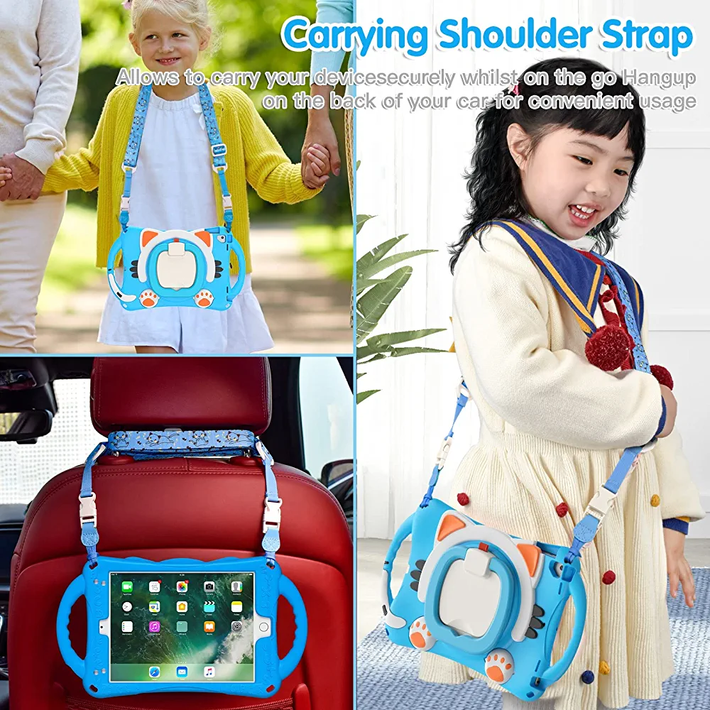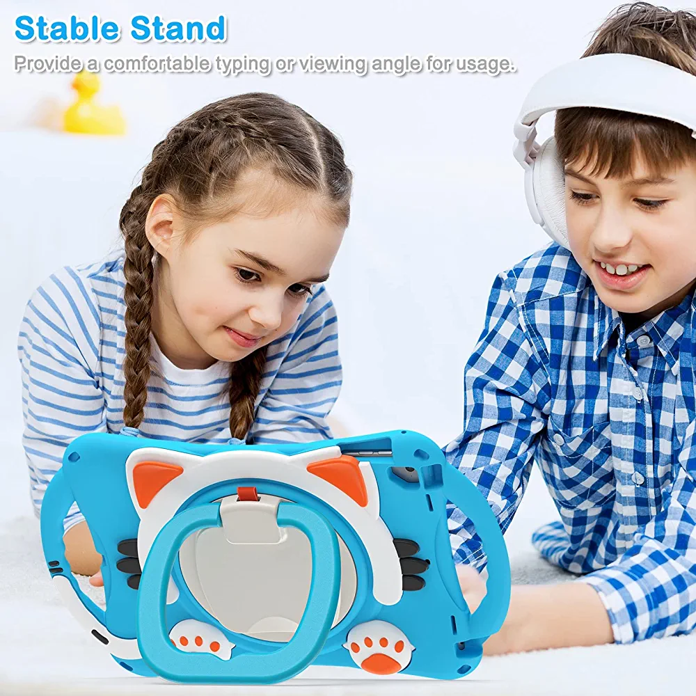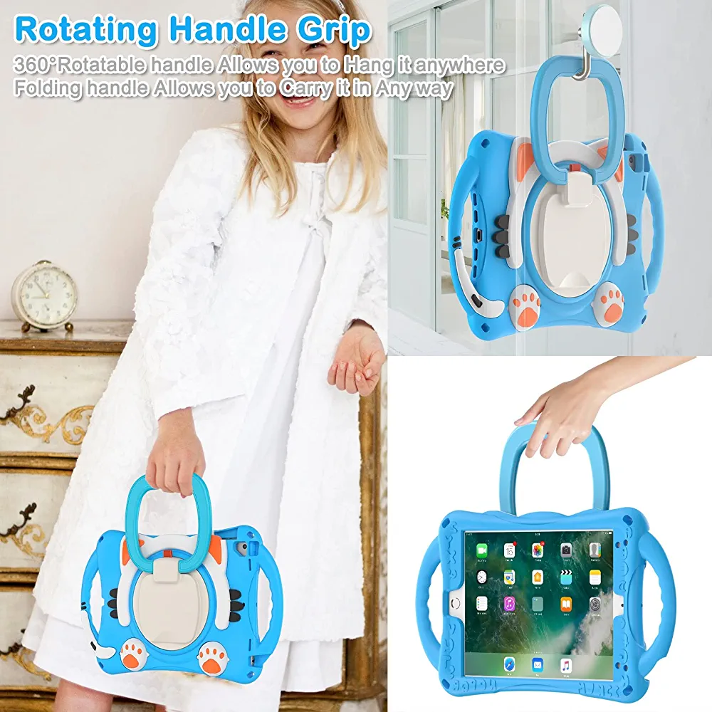 This skin case cover is designed to fit iPad Air/Air2/Pro 9.7/2017/2018 and features a cute cat design that is perfect for kids. The case offers three layers of body protection to effectively protect your tablet from falling, without the need for a separate screen protector. It provides full body protection to prevent drop damages and offers a comfortable way to hold and use your iPad.