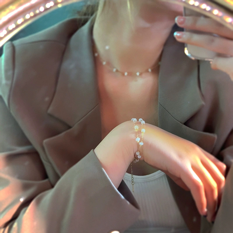 | nameOriginal | Protein crystal bracelet women's natural stone bracelet sweet light luxury niche summer new hand jewelry titanium steel chain jewelry |
