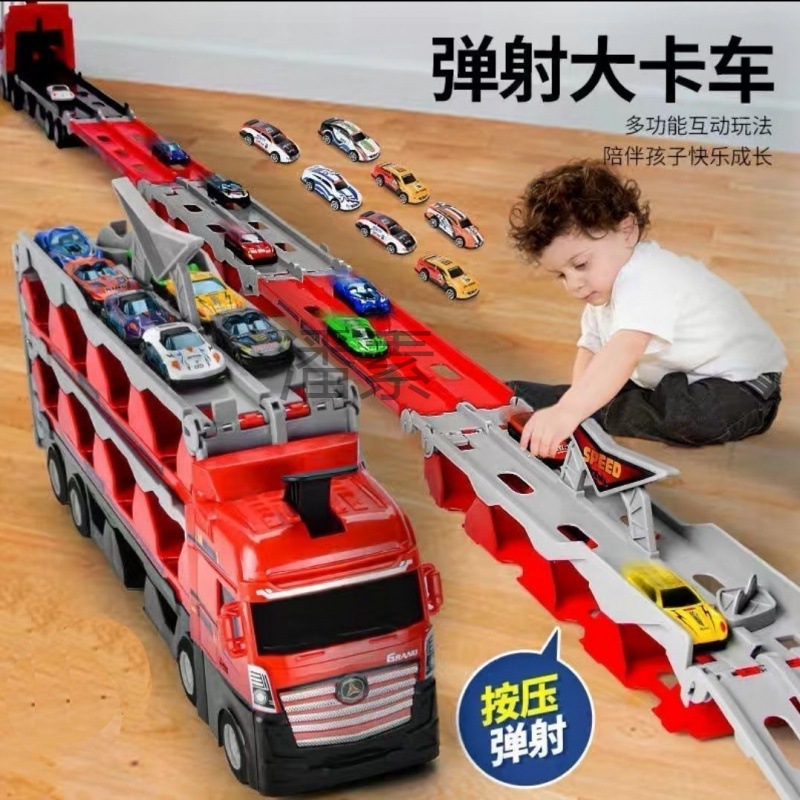 Ps alloy storage container engineering vehicle deformation truck children's transport folding track ejection car boy play