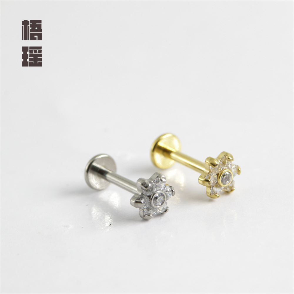 | nameOriginal | PS1010 G23 titanium 1.2mm internal thread zircon lip nail ear bone nail ear studs puncture jewelry cross-border wholesale |