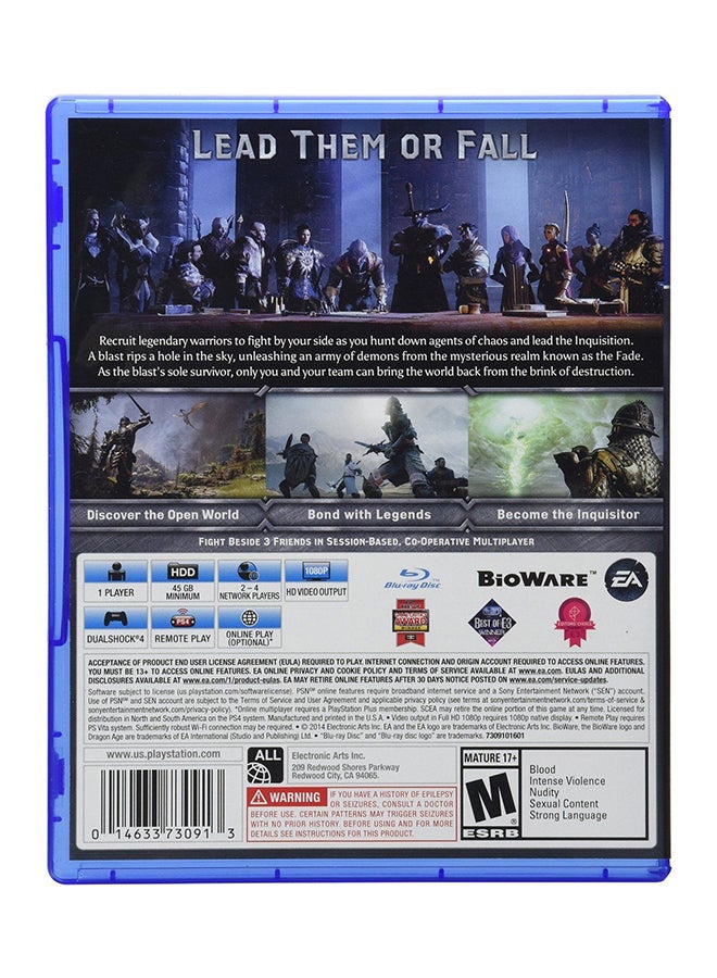 Dragon Age Inquisition (Intl Version) is an immersive role-playing game that takes you on a thrilling adventure through a vast and diverse world. Available on PlayStation 4 (PS4), this game offers stunning graphics and an engaging storyline that will keep you hooked for hours on end. As the Inquisitor, you must lead a team of heroes to save the world from destruction. With a variety of characters to choose from, each with their own unique abilities and personalities, you can customize your gameplay experience to suit your style. Explore the world, battle fierce enemies, and make choices that will impact the outcome of the game. With its captivating gameplay and rich storytelling, Dragon Age Inquisition (Intl Version) is a must-have for any RPG fan.