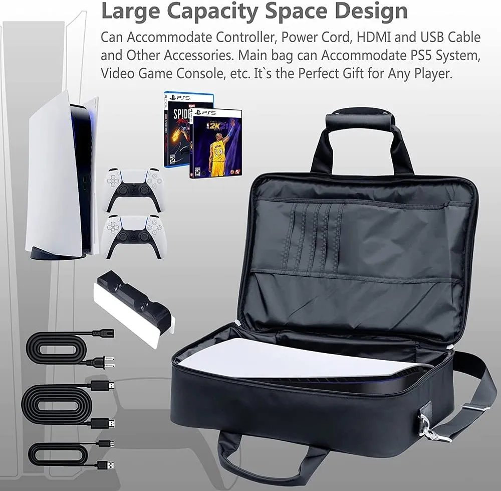 PS5 Carrying Case with Controller Protection Box and Travel Bag for Console & Accessories, Compatible with Playstation 5 and PS5 Digital Edition.