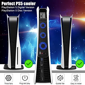 The KASTWAVE Cooling Fan is specially designed for PS5, suitable for both disc and digital versions. It perfectly fits the PS5 console, and the black appearance blends with the console.